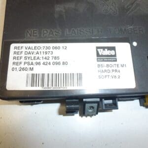 Elle est souvent recherchée sous les références 9642409680 ou 73006012, ce qui facilite son identification lors d’une réparation ou d’un remplacement. Cette BSI utilise un logiciel version V8.2 et un matériel PR4, assurant une compatibilité optimale avec les modules électroniques des véhicules compatibles.