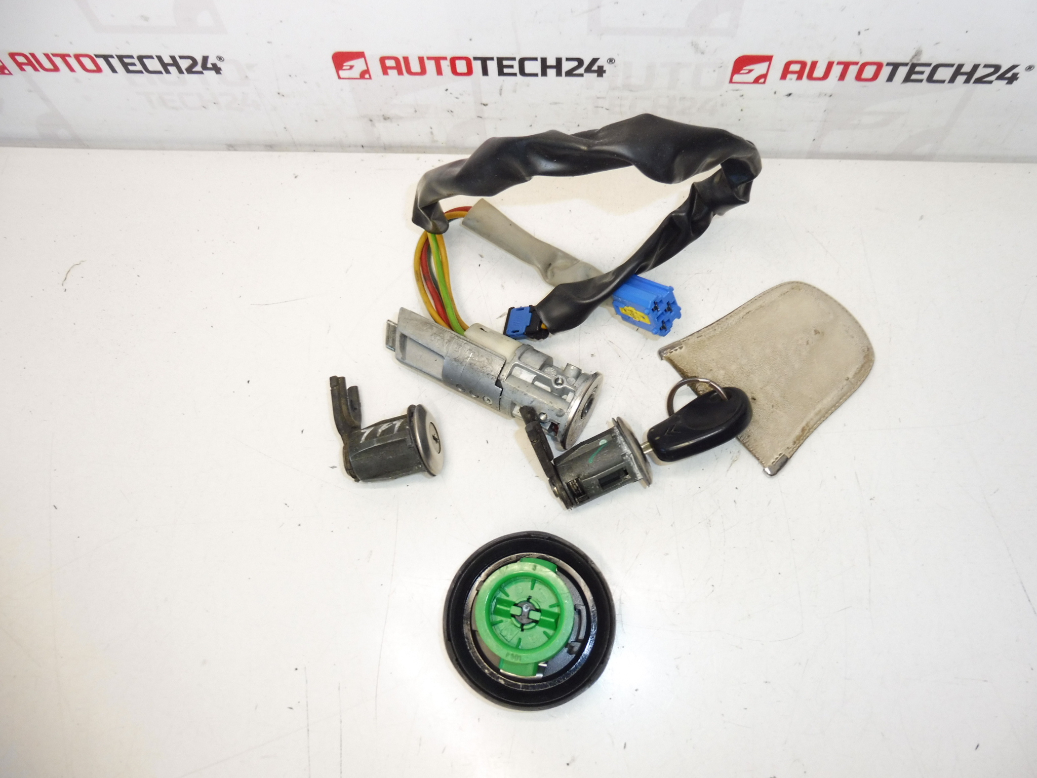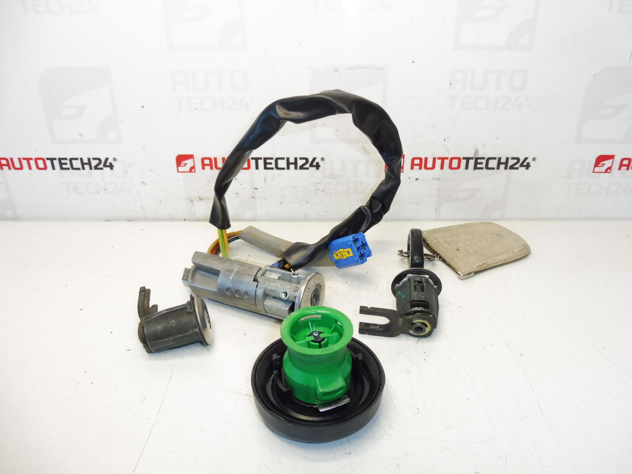 Kit de serrures avec une seule clé pour véhicules Citroën Xsara Picasso. Le kit comprend les serrures des portes avant gauche et droite, ainsi que la trappe de carburant et le contacteur de démarrage. Les serrures ont été testées et sont toutes fonctionnelles.